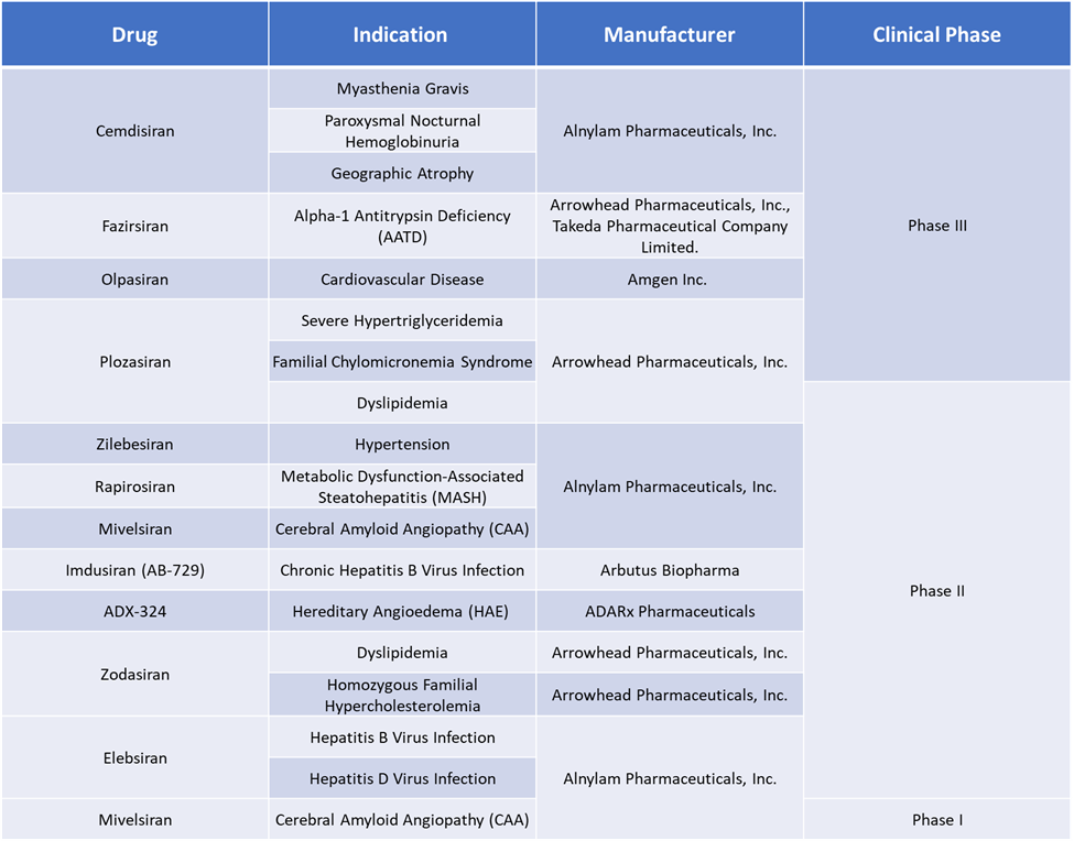 Alnylam Pharmaceuticals | Novartis | Arrowhead Pharmaceuticals | Dicerna (Novo Nordisk) | Ionis Pharma | Sirnaomics | Takeda | Silence Therapeutics | AstraZeneca | Sanofi |