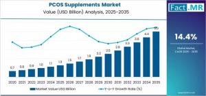 ROCKVILLE, MD, UNITED STATES, December 1, 2025 /EINPresswire.com/ -- The global PCOS supplements market is poised for strong growth from 2025 to 2035, driven by rising prevalence of polycystic ovary syndrome (PCOS), increasing awareness of holistic management approaches, and growing adoption of evidence-based nutritional interventions. PCOS supplements—including myo-inositol formulations, micronutrient blends, omega-3, and herbal products—play a vital role in managing hormonal imbalances, improving insulin sensitivity, regulating menstrual cycles, enhancing fertility, and supporting skin health. This report provides insights into market size, growth drivers, European regional trends, product innovations, and strategic implications for stakeholders.Market Size and Growth