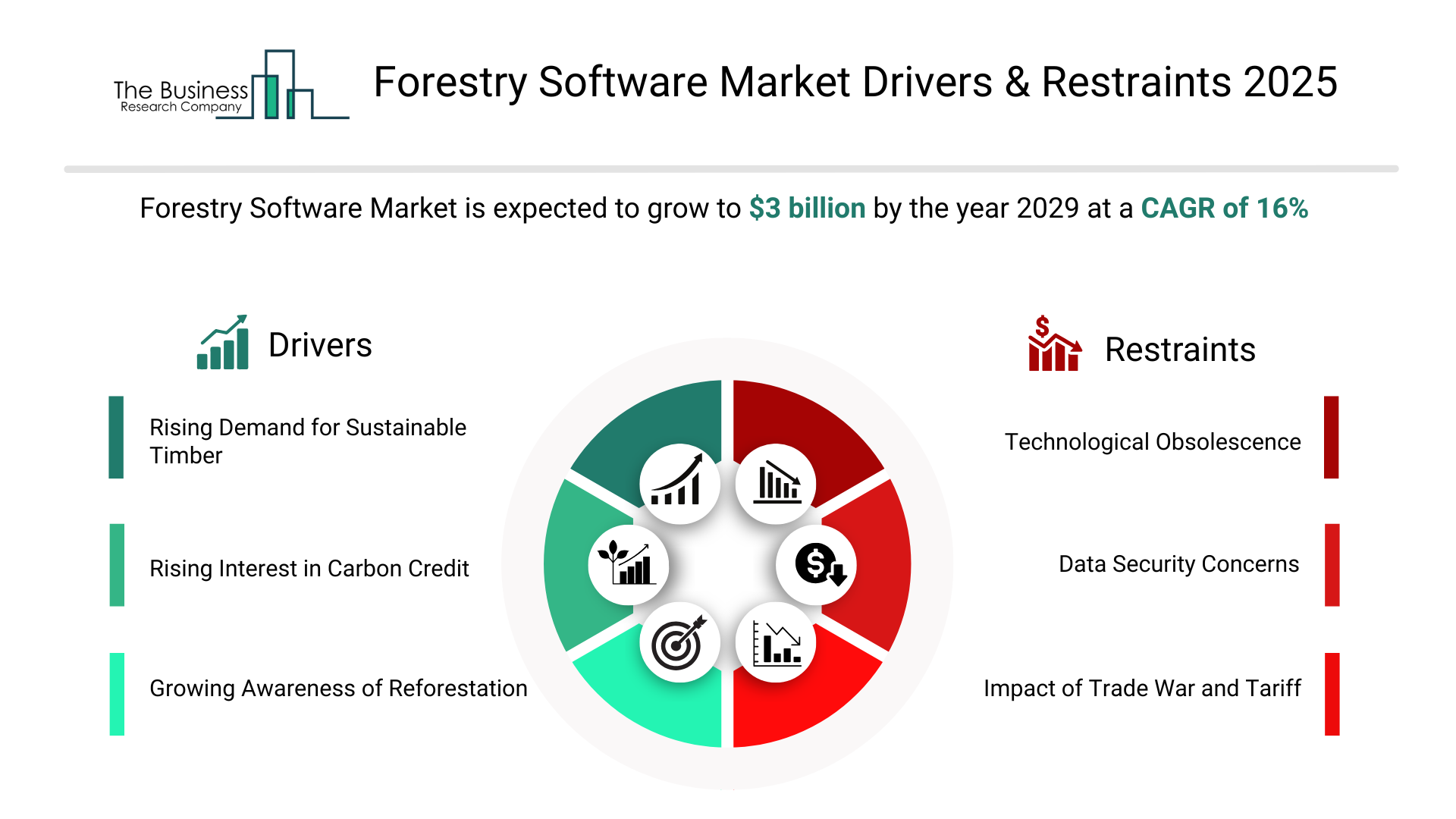Rising Interest In Carbon Credit - The rising interest in carbon credit will emerge as a major factor driving the expansion of the market by 2029. Forestry software is used to accurately measure, monitor, and manage forest carbon stocks, enabling organizations to quantify carbon sequestration for carbon credit programs. By providing data on tree growth, biomass, and land-use changes, it supports verification and reporting required for carbon credit certification. This helps forestry companies and investors capitalize on rising interest in carbon markets while promoting sustainable forest management. Consequently, the rising interest in carbon credit is projected to contributing to a 1.0% annual growth in the market.