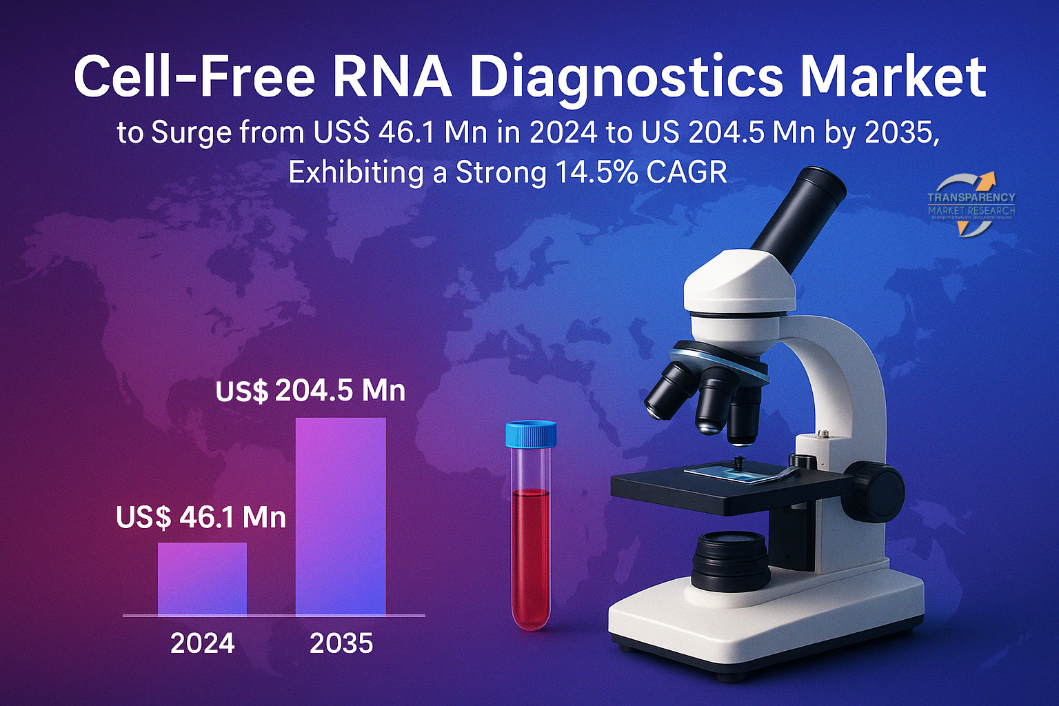 Cell Free RNA Diagnostics Market to Surge from US$ 46.1 Mn in 2024 to US$ 204.5 Mn by 2035, Exhibiting a Strong 14.5% CAGR – TMR Analysis