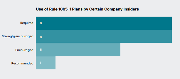 Four of the eight companies in the “Required” category also strongly encourage, encourage, or recommend trading plans for directors (in cases where only Section 16 officers are required to use trading plans) and other designated personnel.