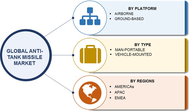 This study provides an overview of the global anti-tank missile market, tracking three market segments across four geographic regions. The report studies key players, providing a five-year annual trend analysis that highlights market size, volume and share for Americas, EMEA, and Asia Pacific,. The report also provides a forecast, focusing on the market opportunities for the next five years for each region. The scope of the study segments the global anti-tank missile market as type and platform.