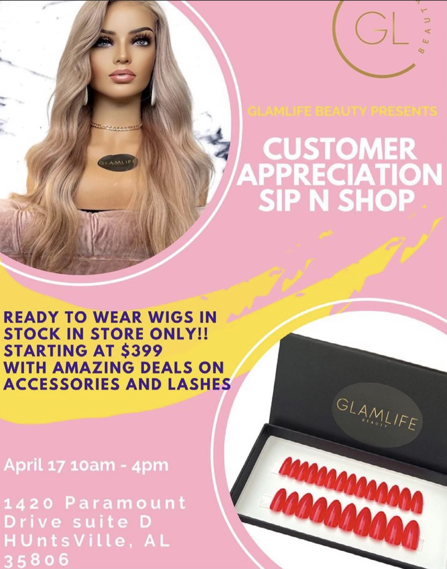 HUNTSVILLE, ALABAMA, UNITED STATES, April 16, 2021 /EINPresswire.com/ -- Queen Harper of GlamLife Beauty Brand will be sponsoring a “Customer Appreciation Sip and Shop” event on Saturday, April 17, 2021. The event will start at 10:00am and last until 4:00pm. Queen will be introducing her newest collection of fine wigs and accessories. You don’t want to miss this exceptional event!