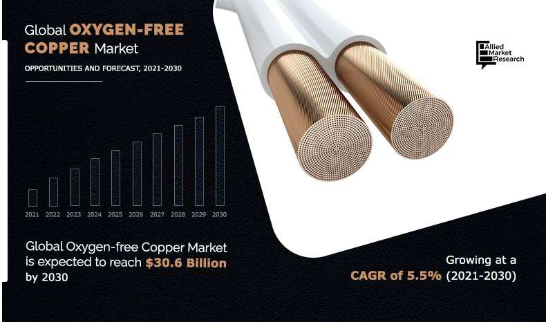 PORTLAND, OREGON, UNITED STATES, January 10, 2022 /EINPresswire.com/ -- Allied Market Research recently published a report, titled, "Oxygen-Free Copper Market1 by Grade (Cu-OF and Cu-OFE), Product Type (Plate, Wire, Strip, Rod, and Others) and End User (Electrical & Electronics, Automotive, and Others): Global Opportunity Analysis and Industry Forecast, 2021–2030". As per the report, the global oxygen-free copper industry was accounted for $18.1 billion in 2020, and is expected to reach $30.6 billion by 2030, growing at a CAGR of 5.5% from 2021 to 2030.