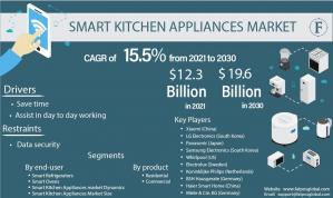 PHILADELPHIA, UNITED STATES , January 10, 2022 /EINPresswire.com/ -- Fatpos Global has released a report titled “Smart Kitchen Appliances Market - Analysis of Market Size, Share & Trends for 2014 – 2020 and Forecasts to 2030” which is anticipated to reach USD 19.6 billion by 2030. According to a study by Fatpos Global, the Smart Kitchen Appliances market is anticipated to portray a CAGR of 15.5 % between 2020 and 2030. According to the report, Due to an acute shortage of time in an era where every individual is focusing on moving forth with maximum productivity, it has become extremely important for people to complete their tasks in the required time and with great precision. Hence it has become extremely important for a machine to do a part of the work on its own and save human time to some extent. The introduction of IoT in these devices has gained high popularity and provided the market with great momentum.“Smart refrigerators are now more useful than ever, they not only keep the food fresh but also help the users in their shopping list and buying kitchen ingredients online. They can work on a person’s voice command and can function accordingly. Some appliances can read out the full recipe to the user, alarm the consumer about the expiration date of food products and even create a list of products a consumer is lacking with. User-friendly interfaces and touch screen facilities allow a user to leave a message for another person to read. Other appliances assist the user with temperature control and cooking time. Smart appliances assist the user by starting cooking even without the physical presence of the user. The application of IoT and artificial intelligence assists a user in carefully monitoring the ingredients used by the consumer and helps the user with a healthy diet. Green IoT focuses on lowering energy consumption and CO2 emission hence preserving the environment.”, said a lead analyst at Fatpos Global.