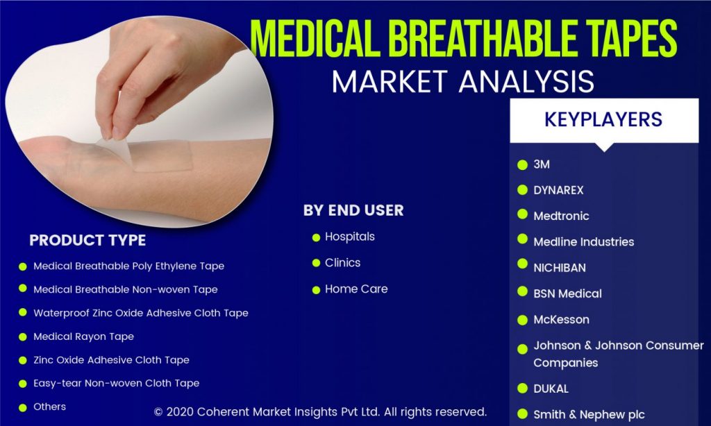 SEATTLE, WASHINGTON, UNITED STATES, March 23, 2022 /EINPresswire.com/ -- Coherent Market Insights has announced new analysis on Medical Breathable Tapes Market1 Status 2022-2028 which has been prepared based on an in-depth market analysis with inputs from industry experts and top vendors in the business. The report covers the market landscape and its development prospects over the coming years. The report also contains a discussion of the key vendors operating in this market.