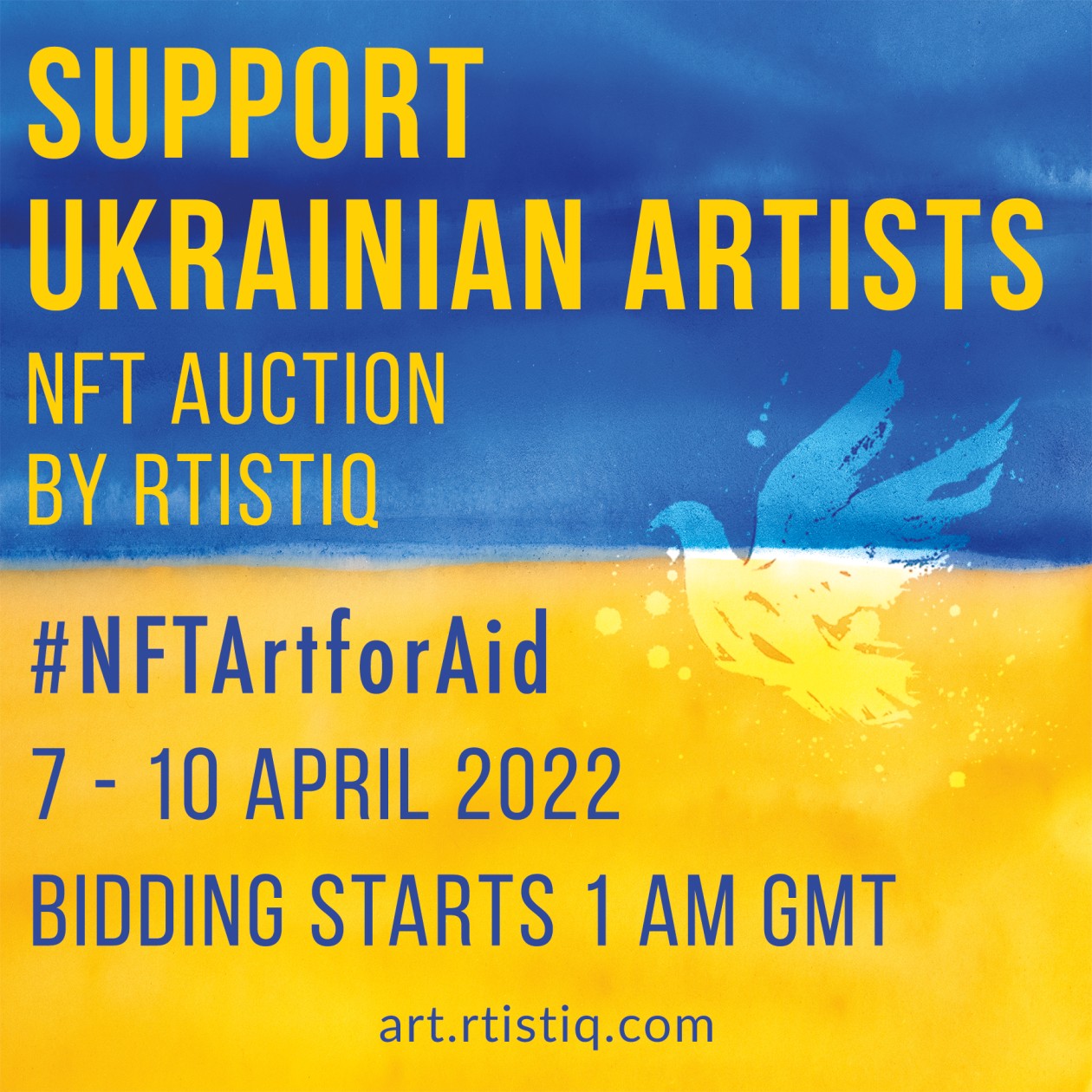 SINGAPORE, April 1, 2022 /EINPresswire.com/ -- RtistiQ, an innovative curated online art platform based in Singapore, today revealed the artists and digital artworks from Ukrainian artists that will be up for auction on its charity NFT drop. The exclusive auction #NFTArtForAid is scheduled to take place online on RtistiQ and bidding will be open from April 7th 09:00 SGT to April 10th 21:00 AM SGT. The ownership of the digital collectables (non-fungible-tokens or NFTs) will be transferred to the highest bidder once the auction ends.