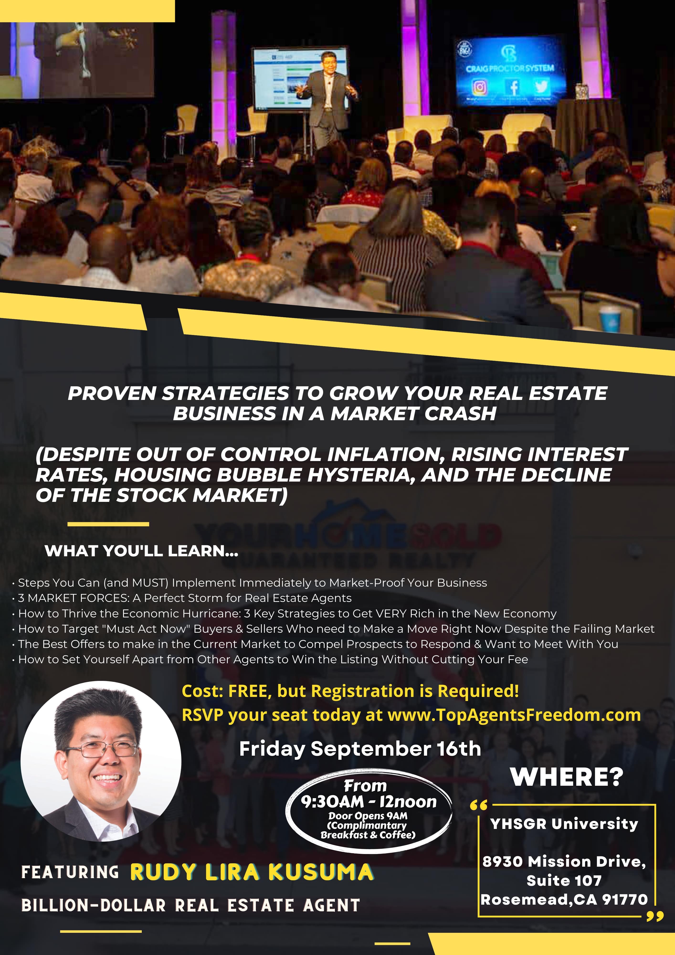 YOUR HOME SOLD GUARANTEED REALTY CEO RUDY LIRA KUSUMA TO HOST FREE REAL ESTATE WORKSHOPS