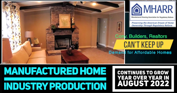 Manufactured Home Industry Production Continues to Grow Year Over Year in August 2022 per Manufactured Housing Association for Regulatory Reform released report that uses official federal data.