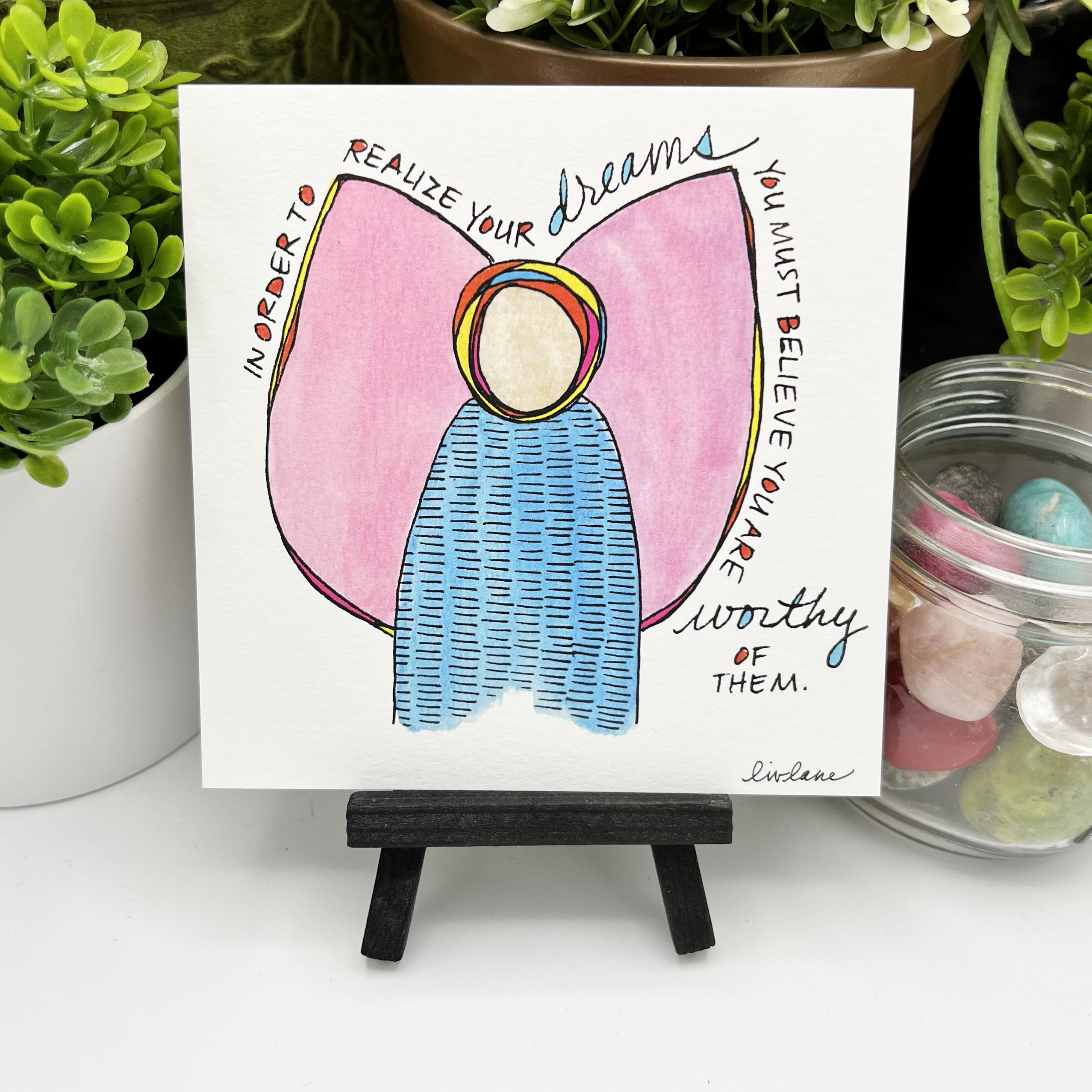Many small business owners offer a more personal connection than the traditional retail environment, and Lane is no exception. She has curated resources to connect with the angels and learn about her experience painting with the angels in The Angel Resource Center (The ARC)2 at LivLane.com. Follow @LivLane on Instagram3 and Facebook to keep up with her adventures with the angels, and to participate in collectively focusing on healing, loving energy via her “A Word with the Angels” art and inspiration.