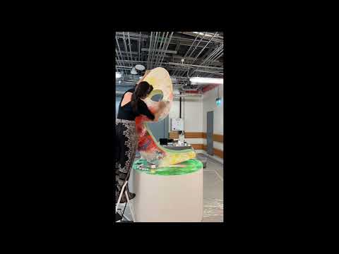 The installation Aida is designing will have two letters of "ﻭ". One will have roots painted all over its surface by Aida to symbolize how all of us are deeply connected, just as the roots of trees are connected. Her chosen colors aim to remind people that living a life of ease is possible as we build a positive butterfly effect for the self and all. The second "ﻭ" will be an interactive installation for people to paint with their fingers, imagining their imprint on this single collective object and then placing their imprint.