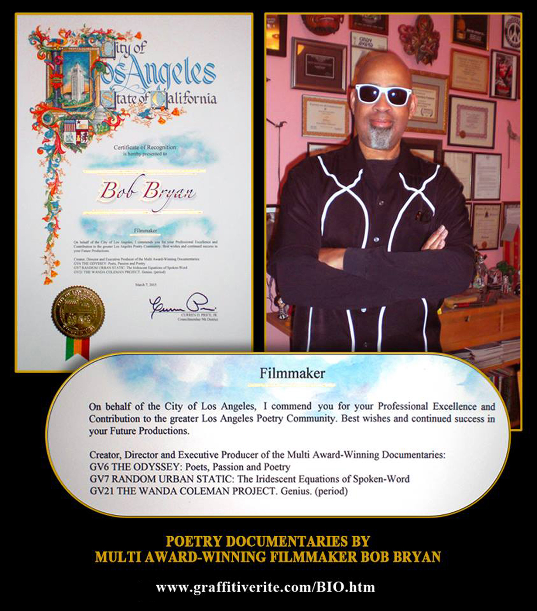“With an act of artistic theatrical-cinematic magic, we have this film. A divine act of poetic sorcery! Filmmaker Bob Bryan knows how to capture, edit and display the beauty of poetry.” - Jack G. Bowman, Poet / MA LMFT