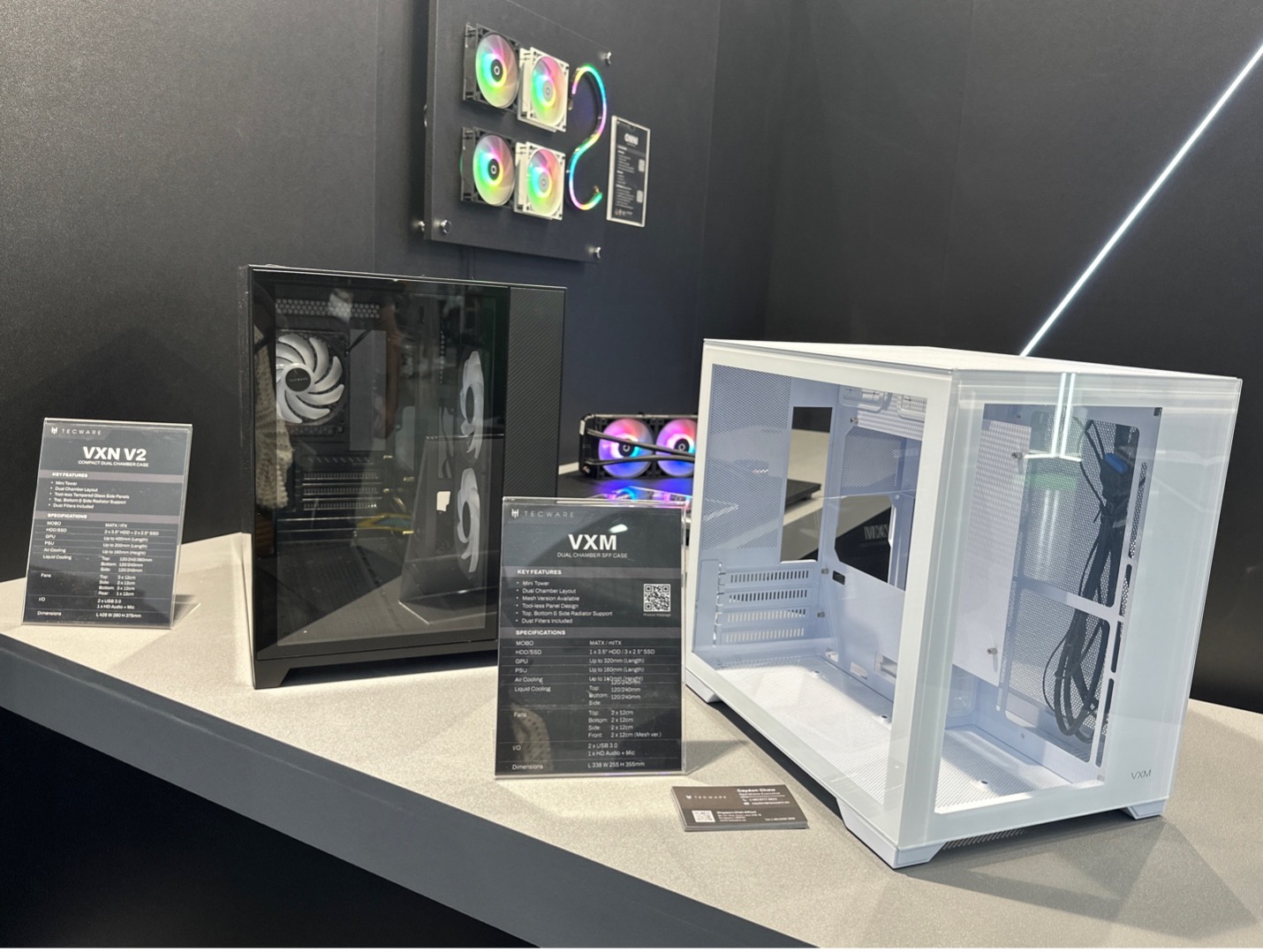 In addition to the remarkable keyboard lineup, Tecware also showcased its latest computer cases and accessories. Visitors to the booth had the opportunity to explore popular releases, including fully built systems featuring Tecware cases and case accessories such as RGB fans, all-in-one coolers, and extension cables. These exhibits offered a comprehensive overview of Tecware's dedication to innovation, performance, and aesthetic appeal in PC customization.