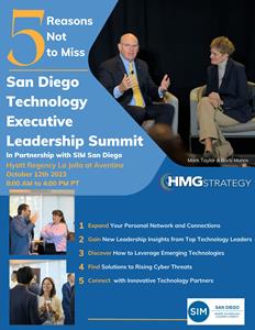 WESTPORT, Conn., Sept. 01, 2023 (GLOBE NEWSWIRE) -- HMG Strategy, the World’s #1 platform for enabling technology executives to reimagine the enterprise and reshape the business world, is excited to be hosting its 2023 San Diego Technology Executive Leadership Summit in Partnership with SIM San Diego on October 12 at the Hyatt Regency La Jolla at Aventine.