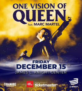 MIAMI, FLORIDA, UNITED STATES, November 28, 2023 /EINPresswire.com/ -- The James L. Knight Center in downtown Miami is set to host a memorable evening celebrating the iconic hits of Queen, featuring the acclaimed artist Marc Martel. Scheduled for December 15, 2023, at 8:00 PM, One Vision of QUEEN1 promises to be a standout event, offering patrons a captivating experience that is sure to be a highlight of the holiday season.Marc Martel, the Canadian singer-songwriter, gained international recognition in 2007 with his viral YouTube video of Queen's "Bohemian Rhapsody." Known for his vocals almost identical to Freddie Mercury, Martel was selected in 2011 to front the Queen tribute band One Vision of Queen.
