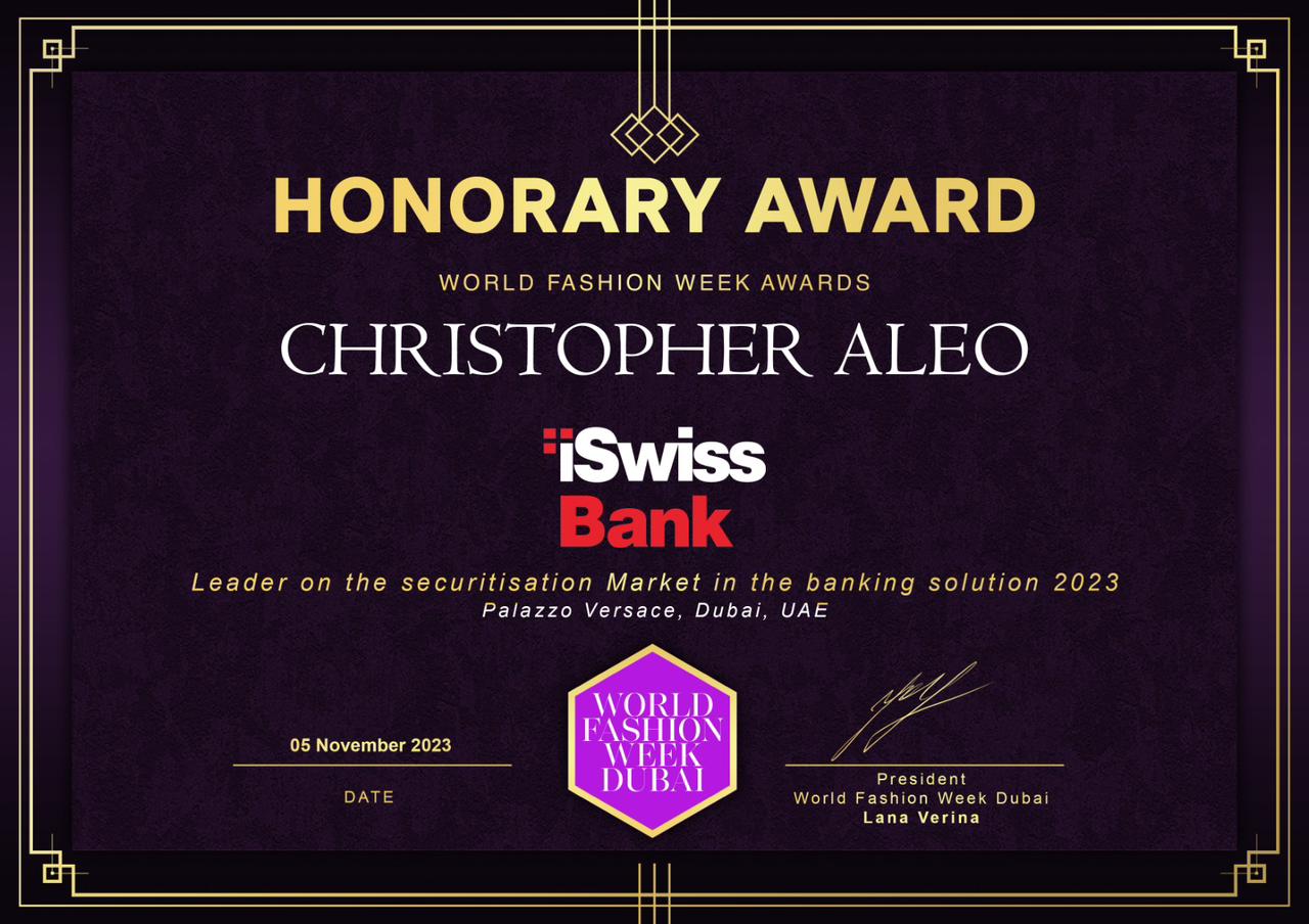 Mr. Christopher Aleo of the iSwiss Group expressed pride in the recognition received, stating, "We have been awarded Best Banking Institution in Securitisation and Best Financial Institution Overall for 2023." He emphasized the group's commitment to securitization and innovation as key aspects of their banking, finance, and insurance operations.