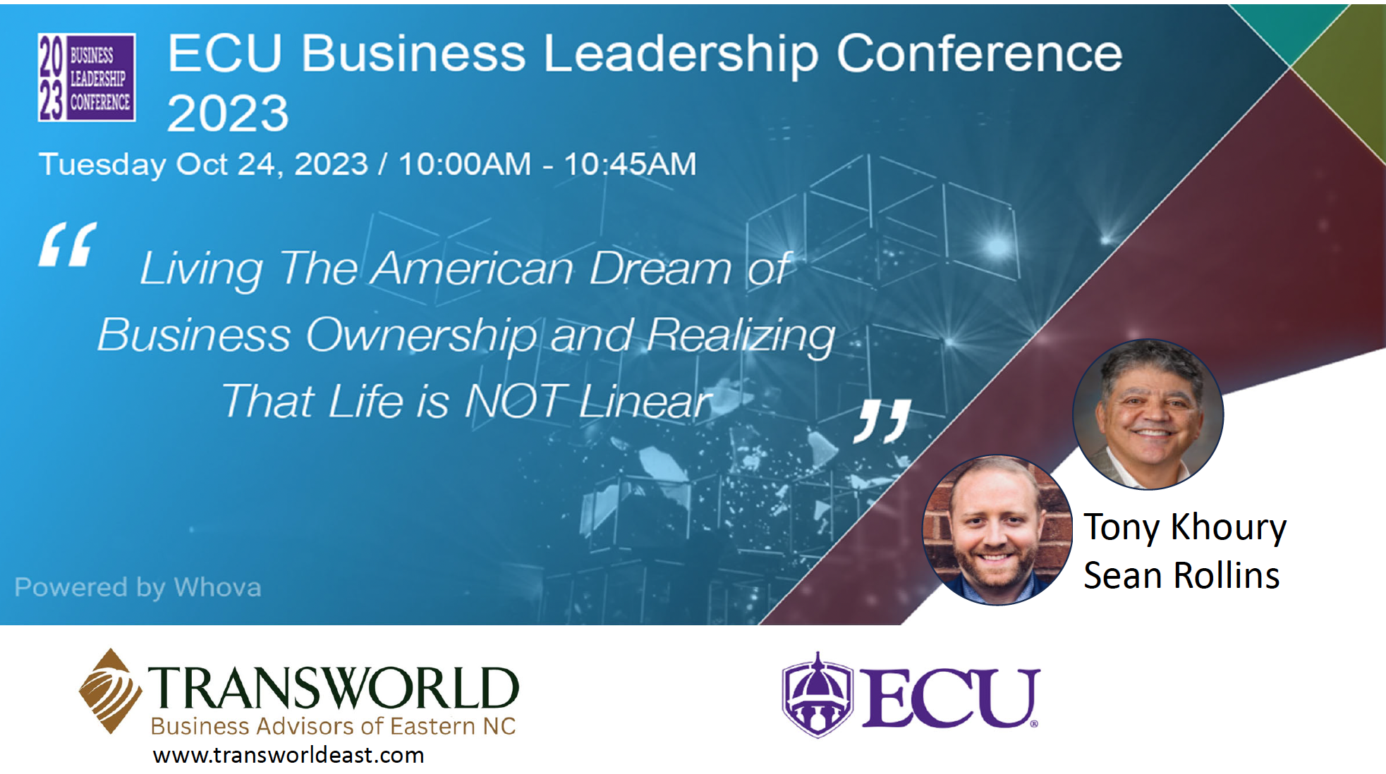 More information about Transworld Business Advisor - Eastern NC can be found at www.transworldeast.com3, or by contacting Tony Khoury at tkhoury@tworld.com or 252-347-9606.