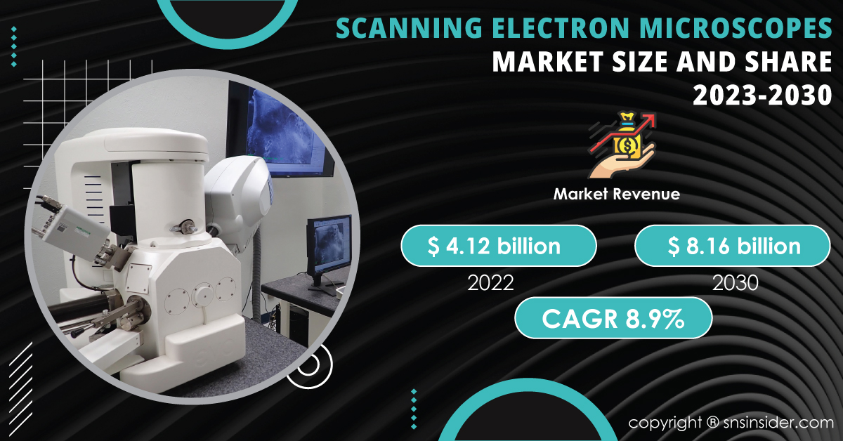 AUSTIN, TEXAS, UNITED STATES, February 16, 2024 /EINPresswire.com/ -- The Scanning Electron Microscopes report provides a comprehensive analysis of the Scanning Electron Microscopes Market1, detailing its current size and projected growth. Valued at USD 4.12 billion in 2022, the market is expected to reach USD 8.16 billion by 2030, growing at a compound annual growth rate (CAGR) of 8.9% during the forecast period from 2023 to 2030.The report explores key factors driving this growth, such as increasing demand for high-resolution imaging techniques in various industries, advancements in microscopy technology, and rising investment in research and development activities. Additionally, it delves into market trends, including the development of advanced imaging and analysis software and the integration of scanning electron microscopes with other analytical instruments. By offering insights into market size, growth projections, and key trends, the report aims to assist stakeholders in understanding the dynamics of the scanning electron microscopes market and making informed decisions to capitalize on growth opportunities.
