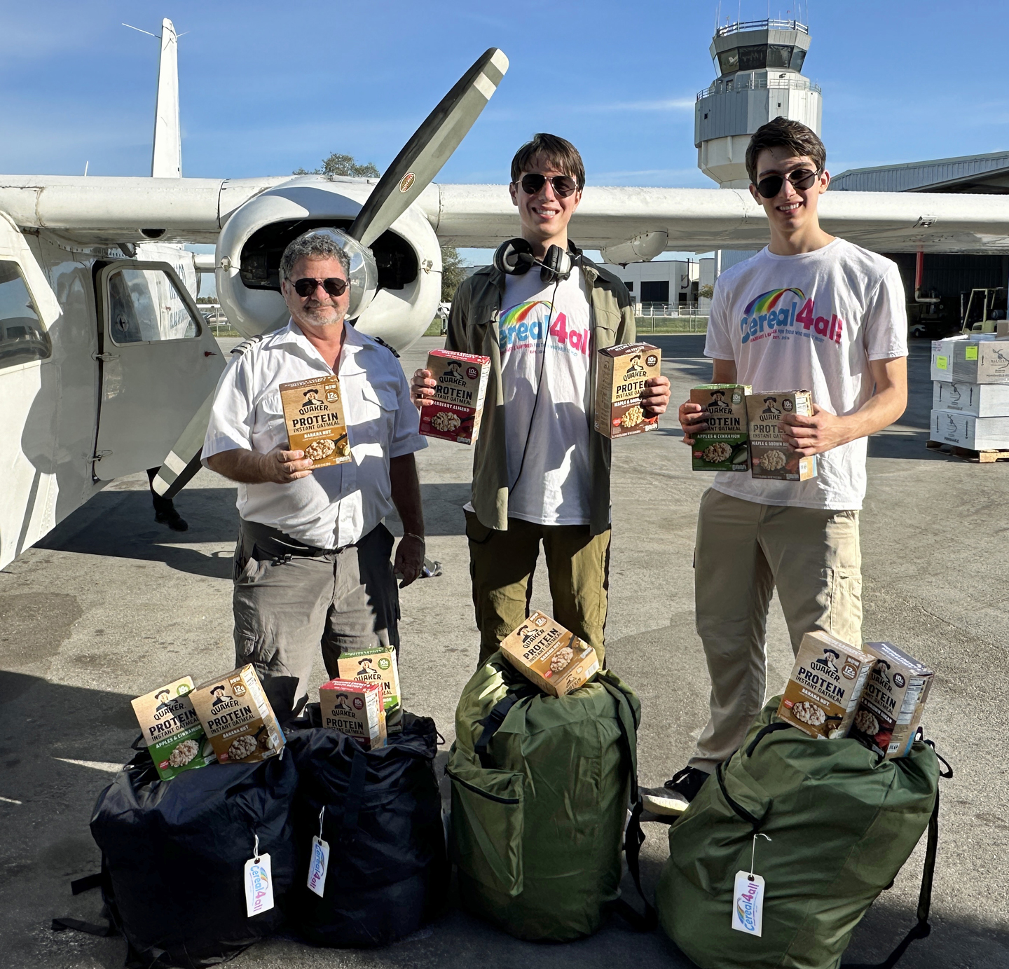 The Justin brothers delivered the cereal and charitable funds to the island thanks to a partnership they formed with the Grand Bahama government, First Watch, and NBA basketball player Buddy Hield of the Philadelphia 76ers, who was born in Freeport. Jett and Luke are student pilots, so they flew the airlift under the guidance of their instructor, Ken Morgenbesser of K & A Aviation.