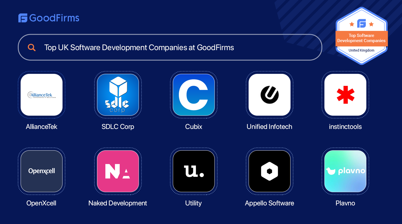 GoodFirms regularly assesses the list of the leading software development companies in London2, catering to the current market needs of various industries. Here, service seekers can also check leading software developers in Leeds3 and Birmingham, which are well-known for aiding businesses with futuristic software development strategies.