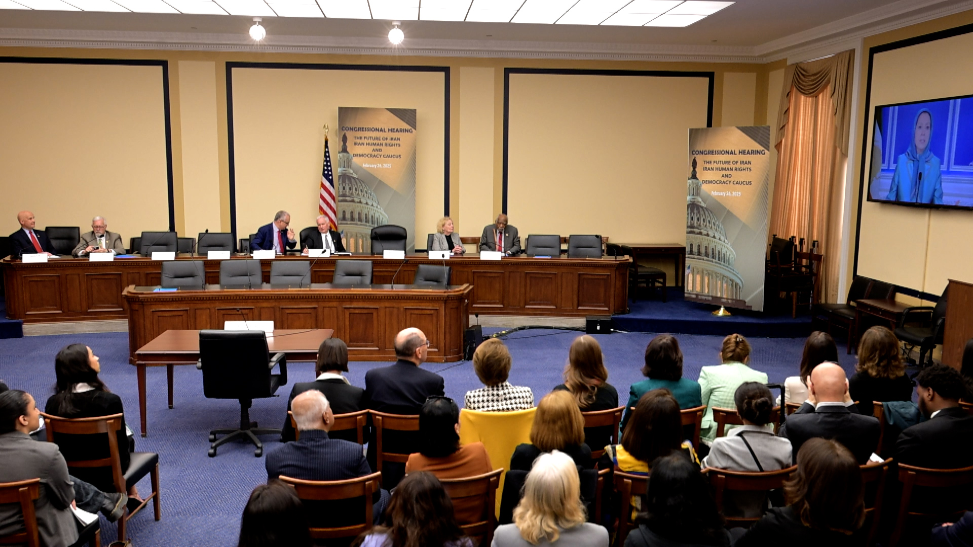 The hearing was chaired by Congressman Tom McClintock (R-CA), the chairman of the IHRDC, and attended by the caucus’ co-chair Steven Cohen (D-TN), and representatives Mario Diaz-Balart (R-FL), Zoe Lofgren (D-CA), Lance Gooden (R-TX), Brad Sherman (D-CA), Keith Self (R-TX), Danny Davis (D-IL), and Randy Weber (R-TX). Mrs. Rajavi responded to the questions by the representatives related to the process of change in Iran, the transitional period and the roadmap to a representative government after the regime's fall, and the role of women in the future of Iran, among others.