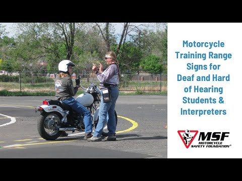 MSF also provides tips and best practices to the training community working with deaf and hard of hearing students and their interpreters. These tips can be found at the MSF Rider Education and Training System On-line Resource Guide, which is available to certified MSF coaches and training providers. In addition, a free video is available3 to help interpreters and students prepare for the hands-on training portion of the Basic RiderCourse and improve communication on the riding range. The video demonstrates standard MSF range signs, specialized signs created for motorcycle training terms without existing American Sign Language equivalents, and adaptations to ensure visibility at greater distances.