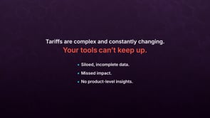 Tariff! Manager delivers instant, SKU-level visibility and predictive insights into tariff costs, exposure, and mitigation opportunities, helping teams shift from reactive firefighting to proactive planning.