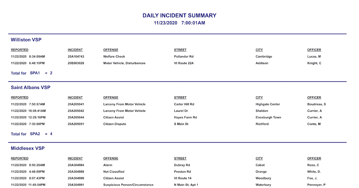 Daily Incident Summary - November 23rd, 2020