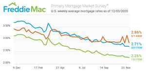 MCLEAN, Va., Dec. 03, 2020 (GLOBE NEWSWIRE) -- Freddie Mac (OTCQB: FMCC) today released the results of its Primary Mortgage Market Survey® (PMMS®), showing that the 30-year fixed-rate mortgage (FRM) averaged 2.71 percent, the lowest rate in the survey’s …