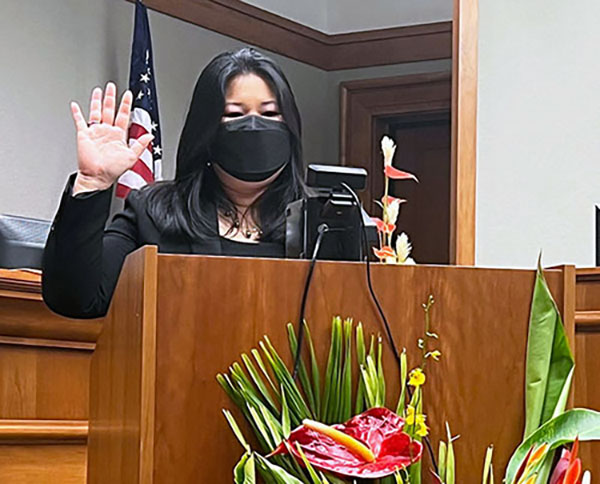 From left, Rep. Mark Nakashima, Judge Henry Nakamoto, Judge Peter Kubota, Judge Wendy DeWeese, Judge Kanani Laubach, Sen. Lorraine Inouye, Chief Judge Robert Kim, Judge Jill Hasegawa, Judge Darien Nagata, Judge Jeffrey Hawk, Judge Jeffrey Ng, and Judge …