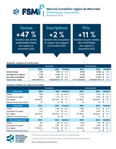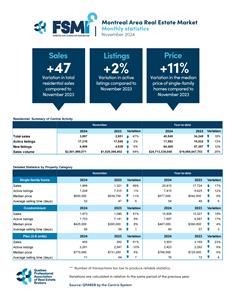 Montreal CMA sales of existing properties returned to growth in November, with a substantial rebound of 47 per cent compared to last year. This increase follows three consecutive years of declines in the month of November. It marks the second-largest …